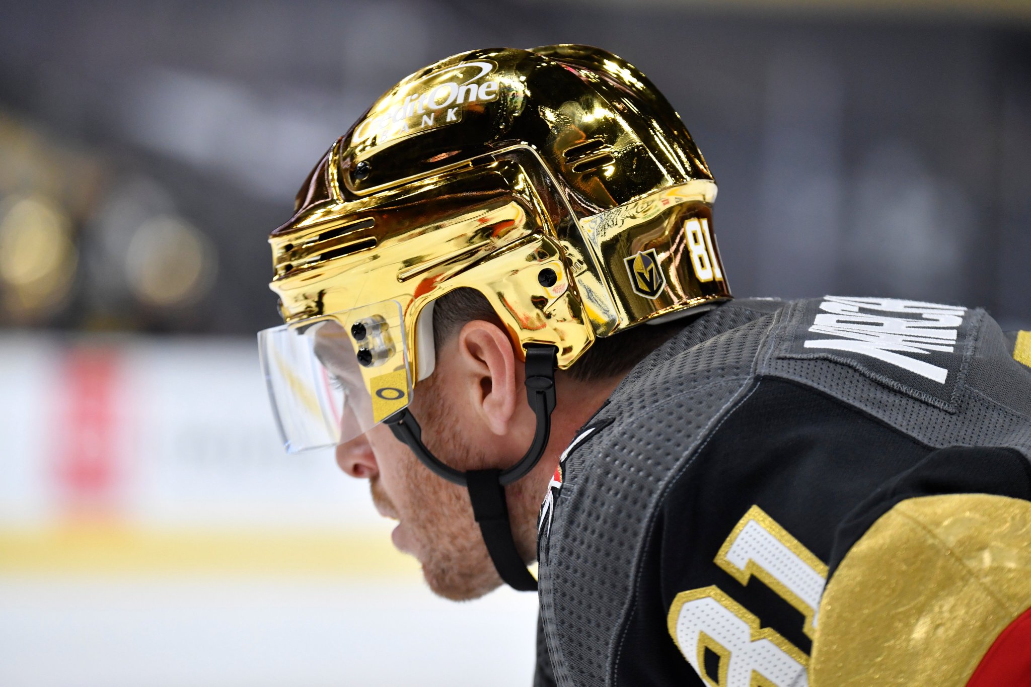 Las vegas golden knights golden helmets. When the golden knights took the ice against the anaheim ducks thursday night the team debuted gold chrome helmets that were for lack of a better word bright. From the first metallic gold sweaters in nhl history to a red reverse retro dedicated to the las vegas wranglers and las vegas thunder it has been a time if youve wished for vegas to broaden its unique design. Vegas golden knights celebrate after left wing max pacioretty 67 scored on the colorado avalanche during the second period of an nhl hockey game tuesday feb.