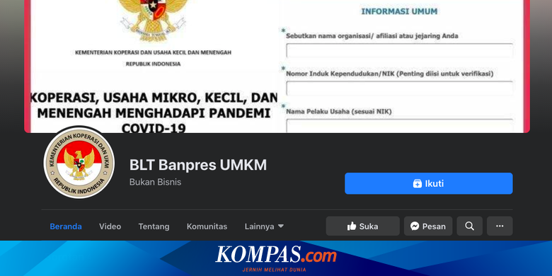 Halaman Facebook Ini Berisi Info Blt Umkm Apakah Resmi Dari Kemenkop Halaman All Kompas Com