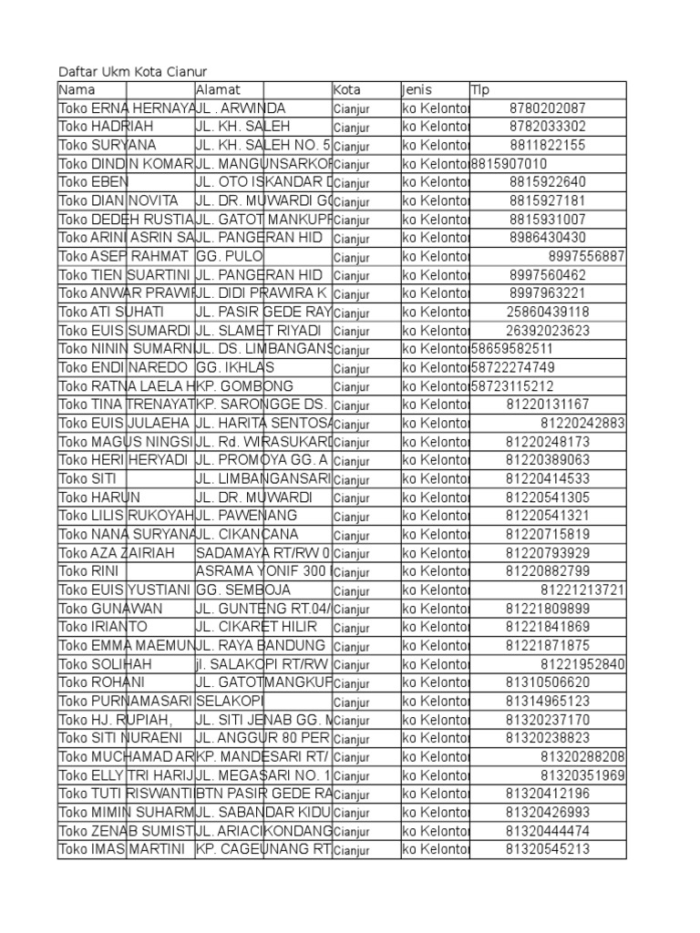 Daftar Alamat Perusahaan Di Cianjur Jabar
