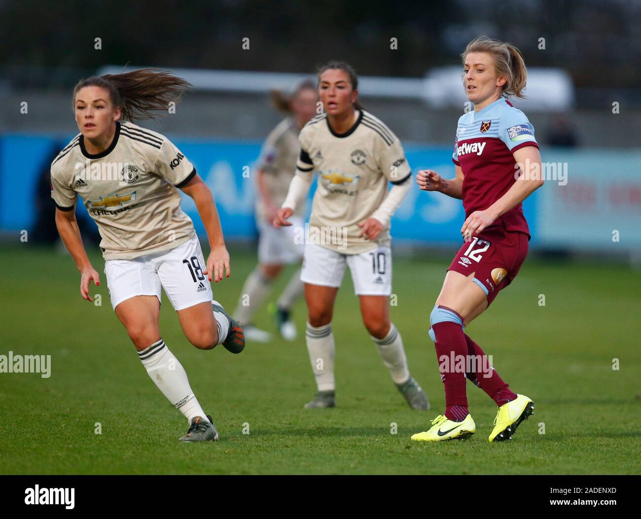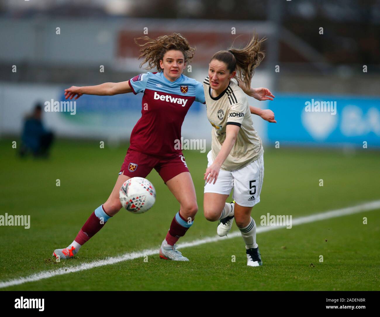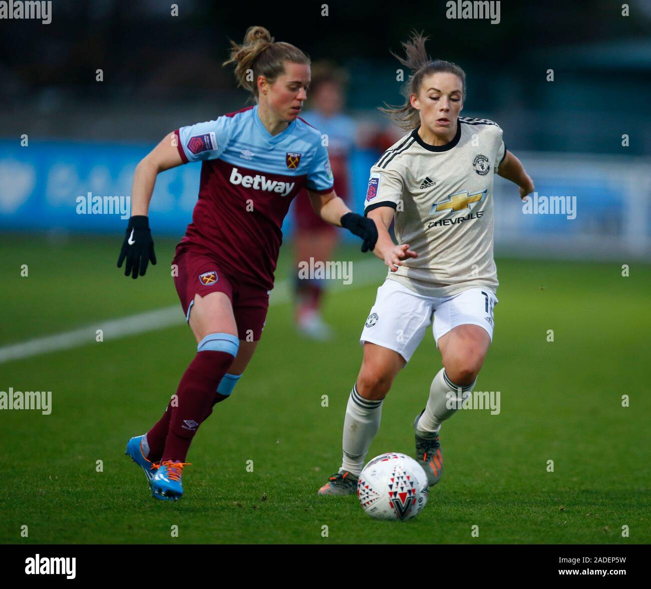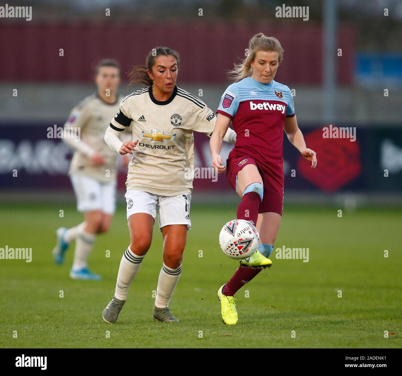 Dagenham England December 01 L R Kirsty Hanson Of Manchester United Women And Kate Longhurst Of West Ham United Wfc During Barclays Women S Super Stock Photo Alamy