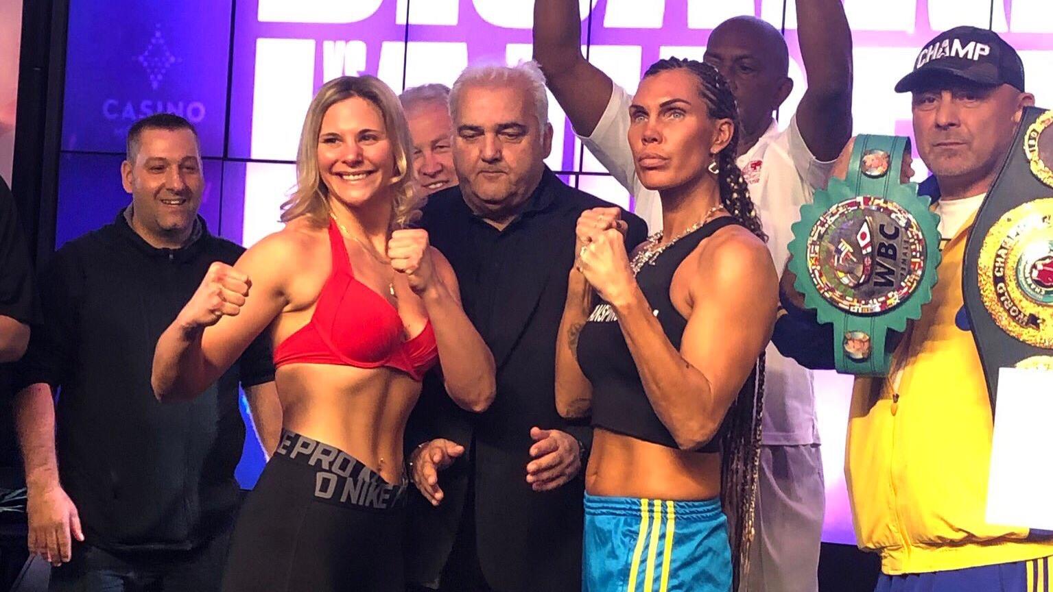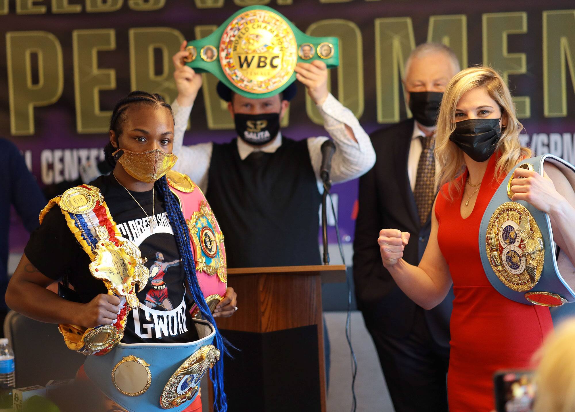 Claressa shields left and marie eve dicaire are facing off on friday night for a womens super welterweight title the headline bout of a pay per view featuring all women.