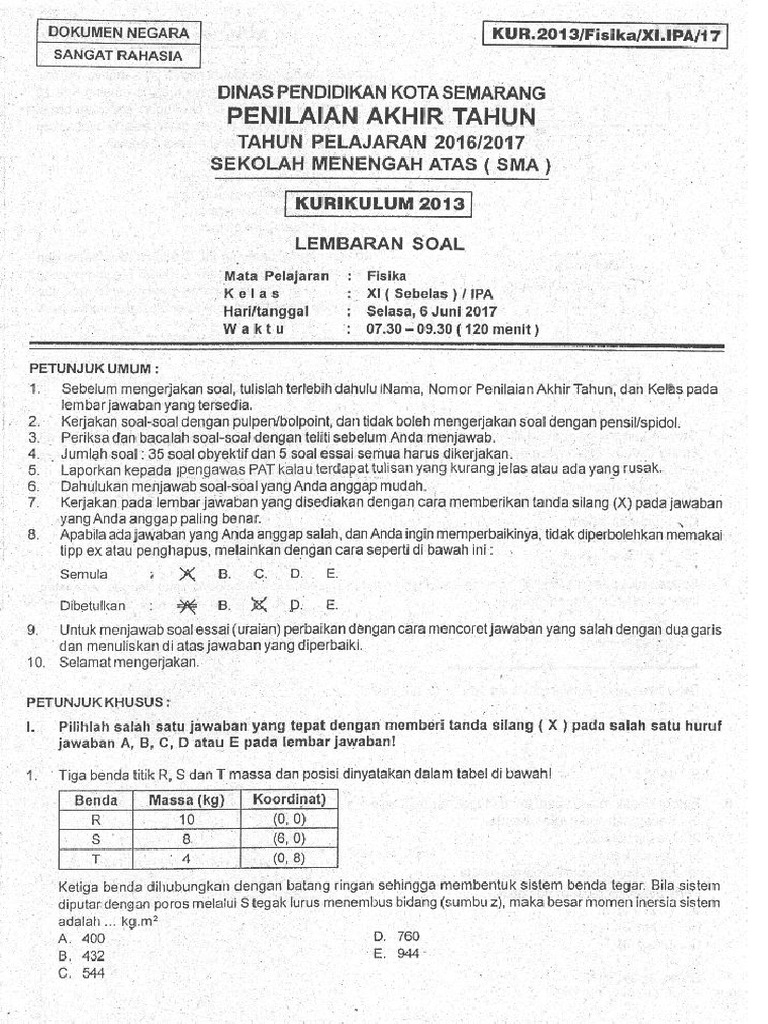 Latihan Soal Uas Fisika Kelas 11 Semester 1 K13 2021 Dan Kunci Jawaban