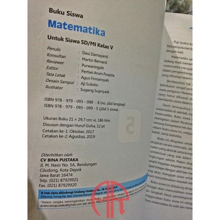 Jual Buku Sd Kelas 5 Buku Matematika Kelas 5 Sd Mi Kurikulum 2013 Jakarta Selatan Dacin Sihotang Tokopedia