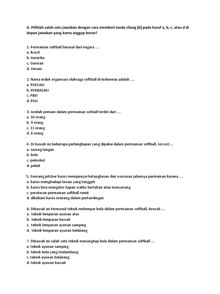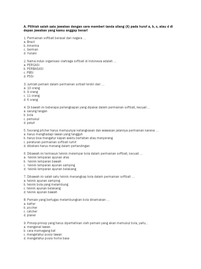 Contoh Soal Ulangan Pjok Kelas Vii Smp Mts Materi Bola Kecil