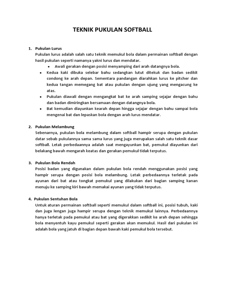Satu orang menangkap bola yang melambung dan c. B pemukul tepat mengenai bola sehingga bola meluncur jauh ke depan. 5 poin teknik memukul bola tanpa ayunan dalam permainan softball disebut tanyakan detil pertanyaan.
