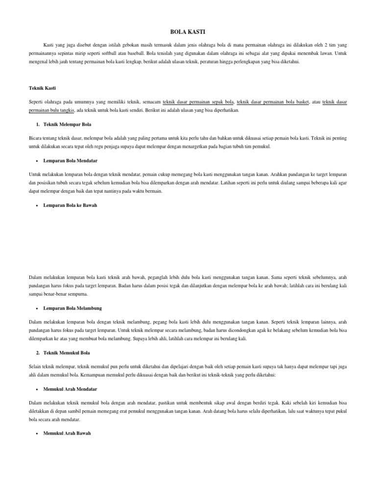 Teknik Dasar Permainan Bola Kasti Pdf Document