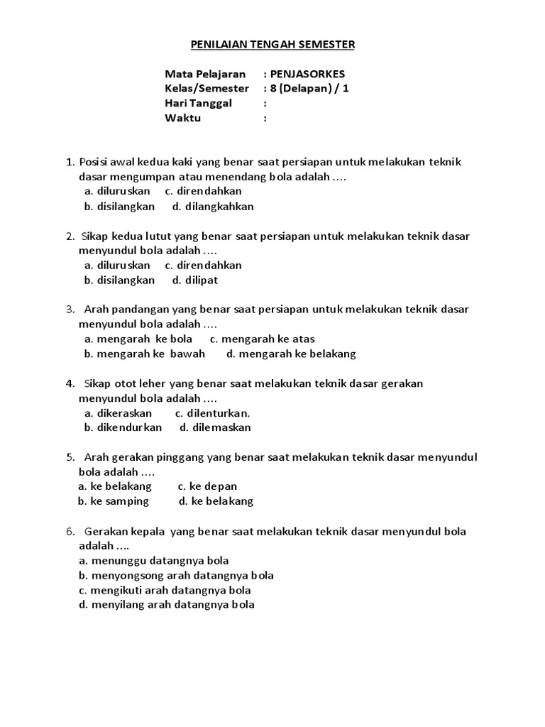 Penilaian Akhir Tahun Mapel Pjok Kelas Viii T P 2019 2020 Quiz Quizizz