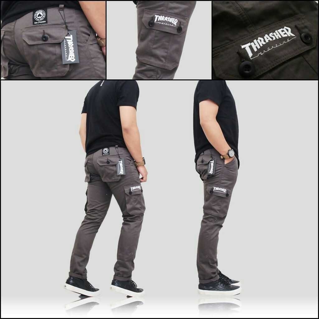 Thrasher Celana Chino Pria Slimfit Abu Shopee Indonesia