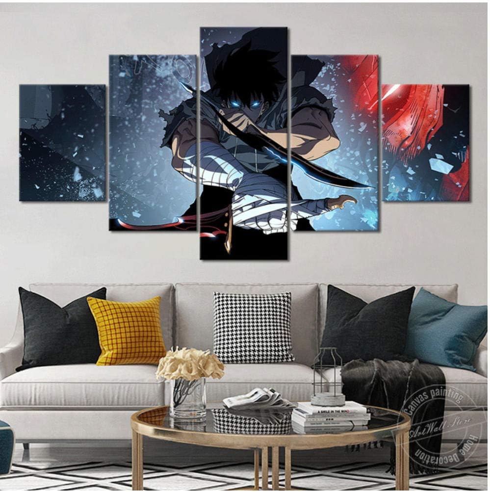 Amazon Com Wangjru Anime Poster Hd Wallpaper Solo Leveling Oil Painting Home Decor Sung Jin Woo Cartoon Canvas Art Paints Wall Picture Wall Stickers With Framed 40x60x2 40x80x2 40x100cm Posters Prints