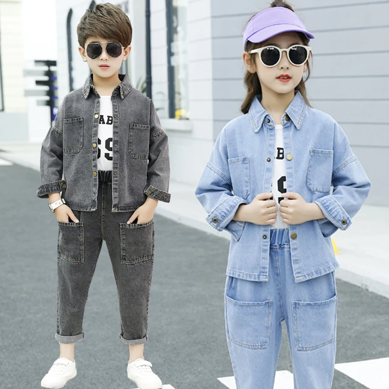 Unisex Casual Kids Long Sleeve Pocket Denim Jacket Boys Girls Autumn Outfit Korean Style Design Jeans Girls Clothes Jackets Coats Aliexpress