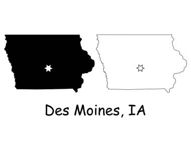 Iowa Outline Usa State Map Des Moines Capital Ks1 Black And White
