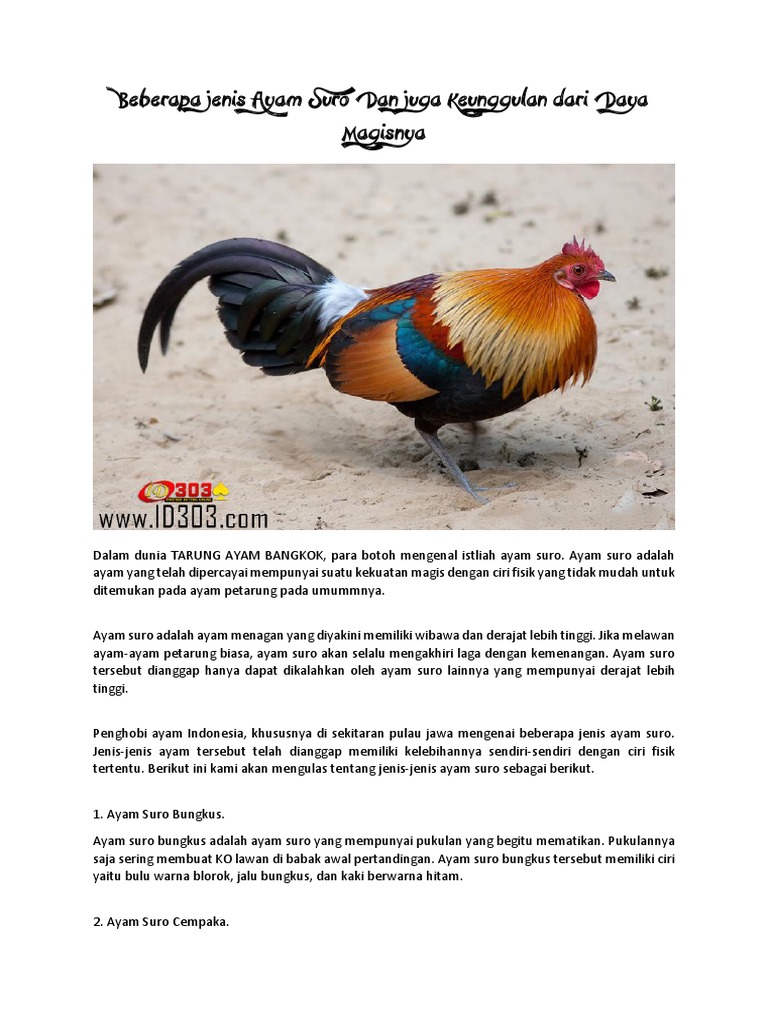 Beberapa Jenis Ayam Suro Dan Juga Keunggulan Dari Daya Magisnya