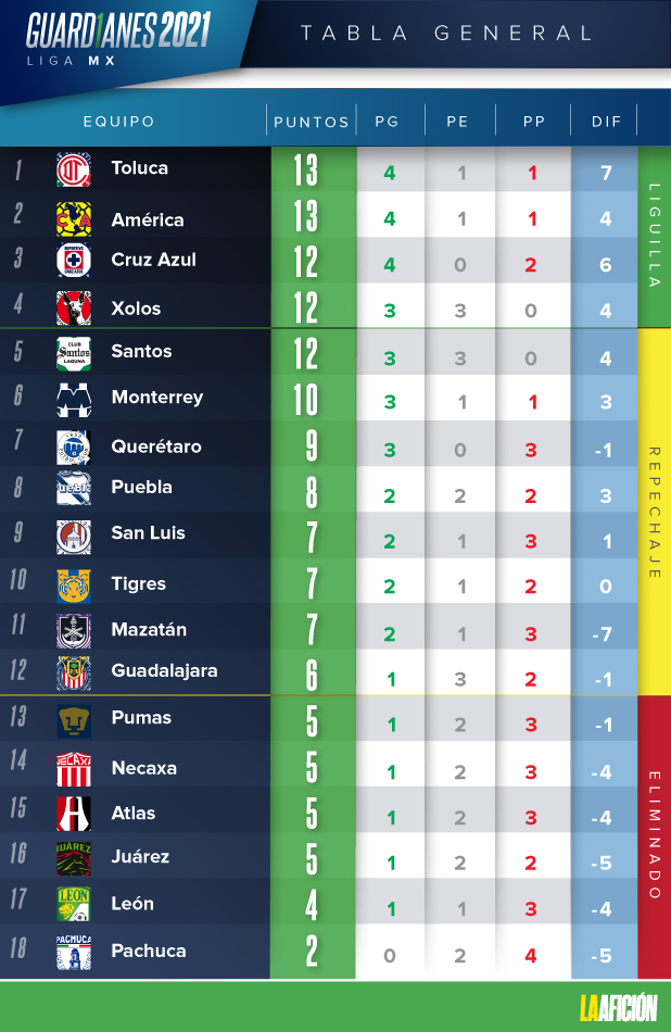 Tabla General De La Liga Mx Al Momento Guardianes 2021 Jornada 6 Reporte 32 Mx El Medio Digital De Mexico